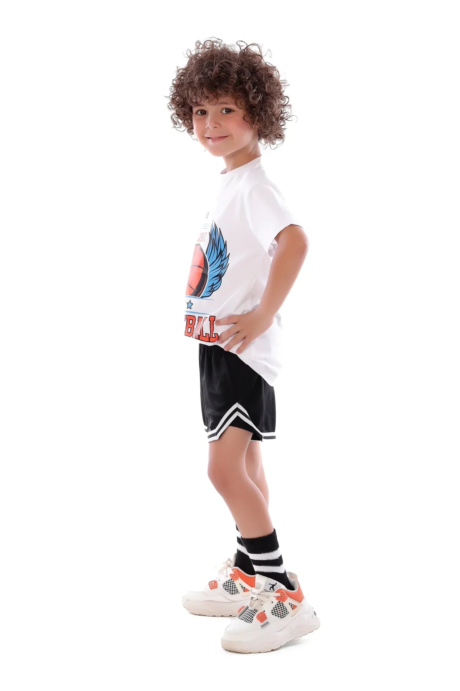 تي شيرت كرة السلة الأبيض للأولاد - تي شيرت رياضي