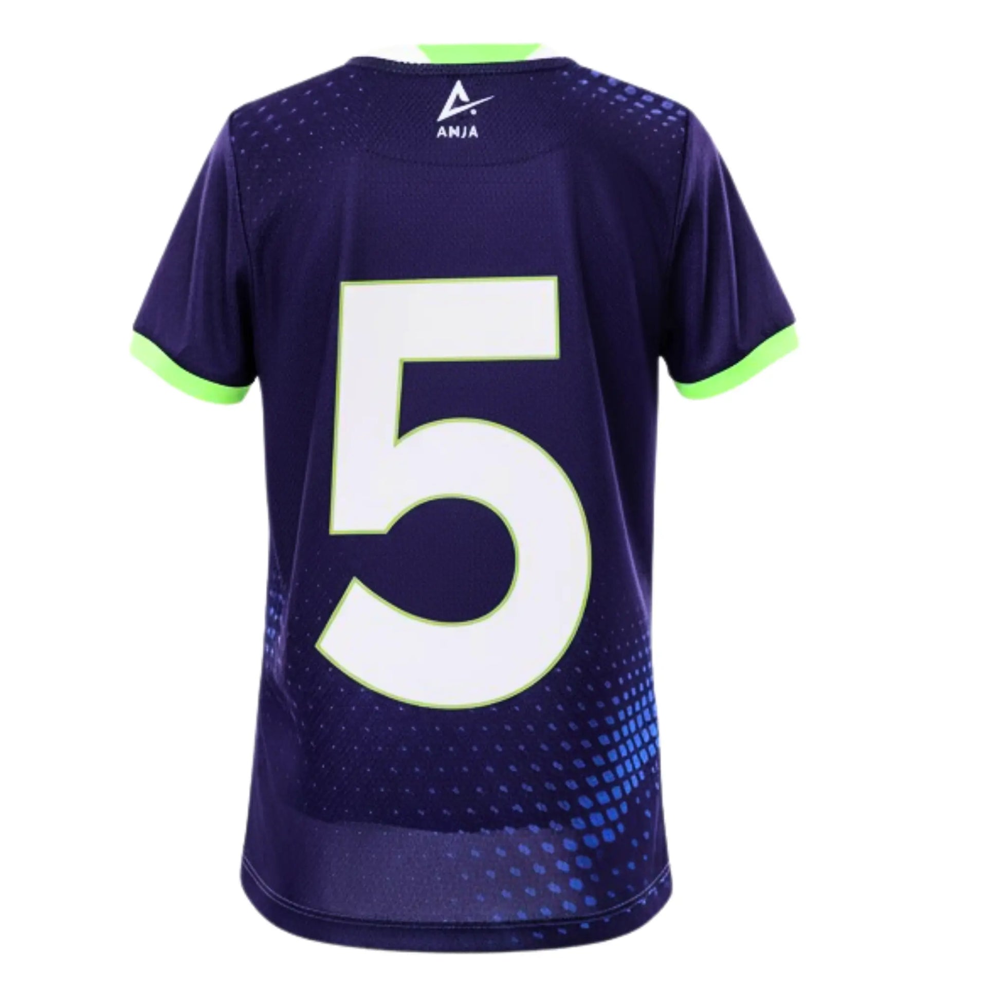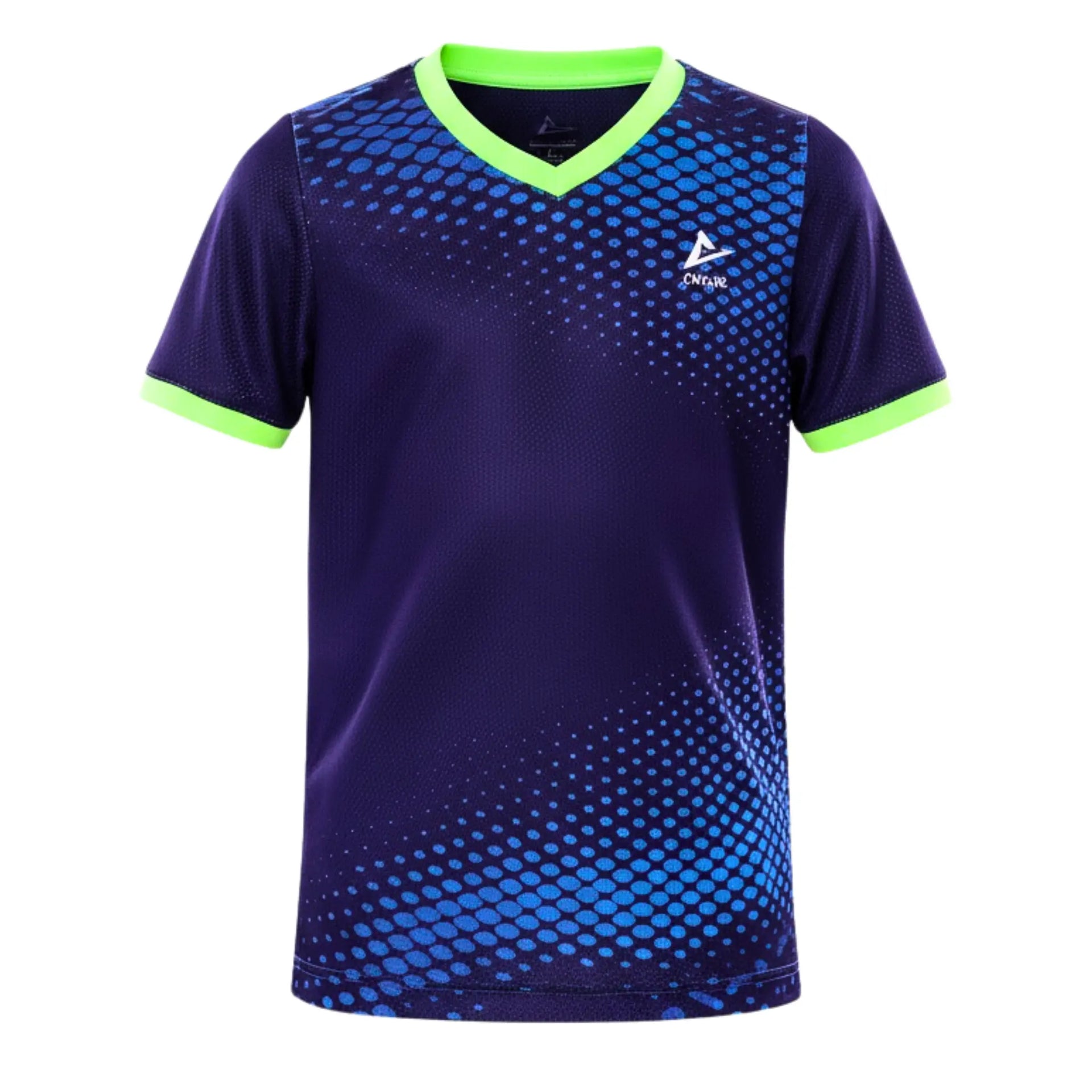 تي شيرت أزرق للبنات بنقشة سداسية باهتة - بلوزة رياضية