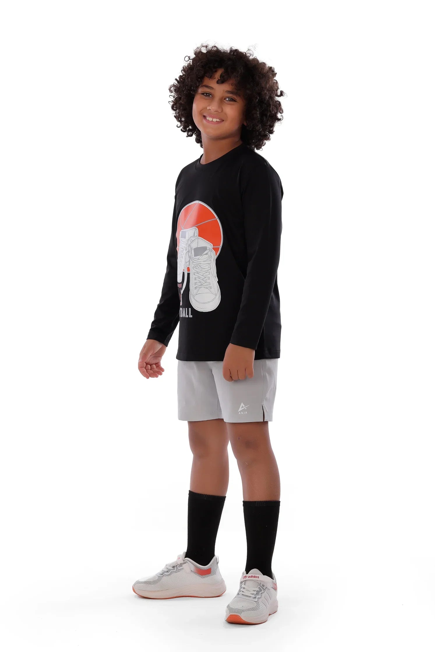 Boys Basketball Shoes & Ball Graphic Long Sleeve T-Shirt – Sporty Athletic Tee