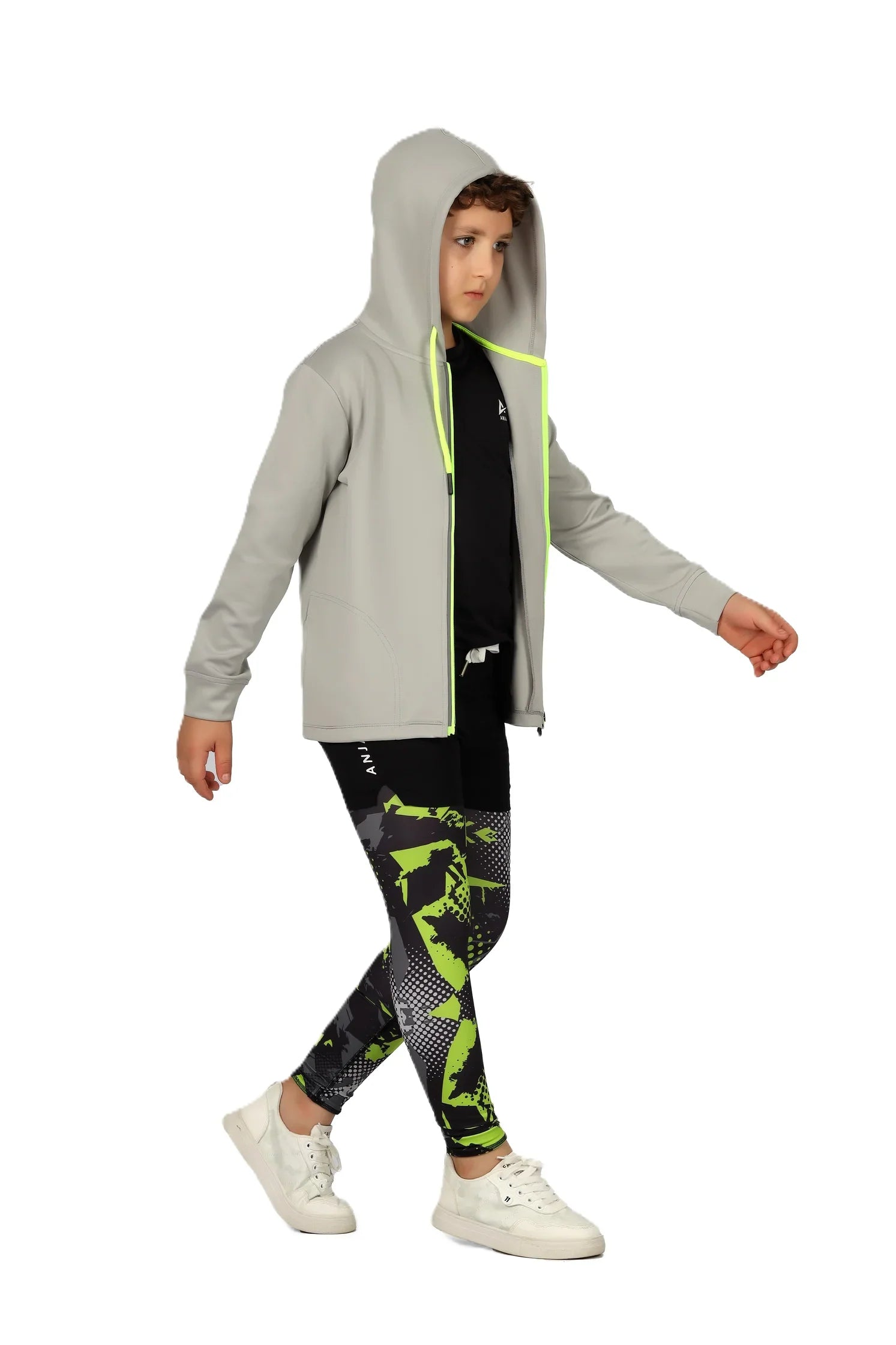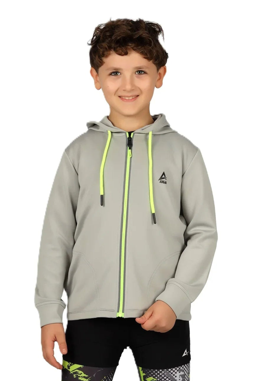 Boys Black Zip-Up Sweatshirt – Sporty Contrast Trim Jacket
