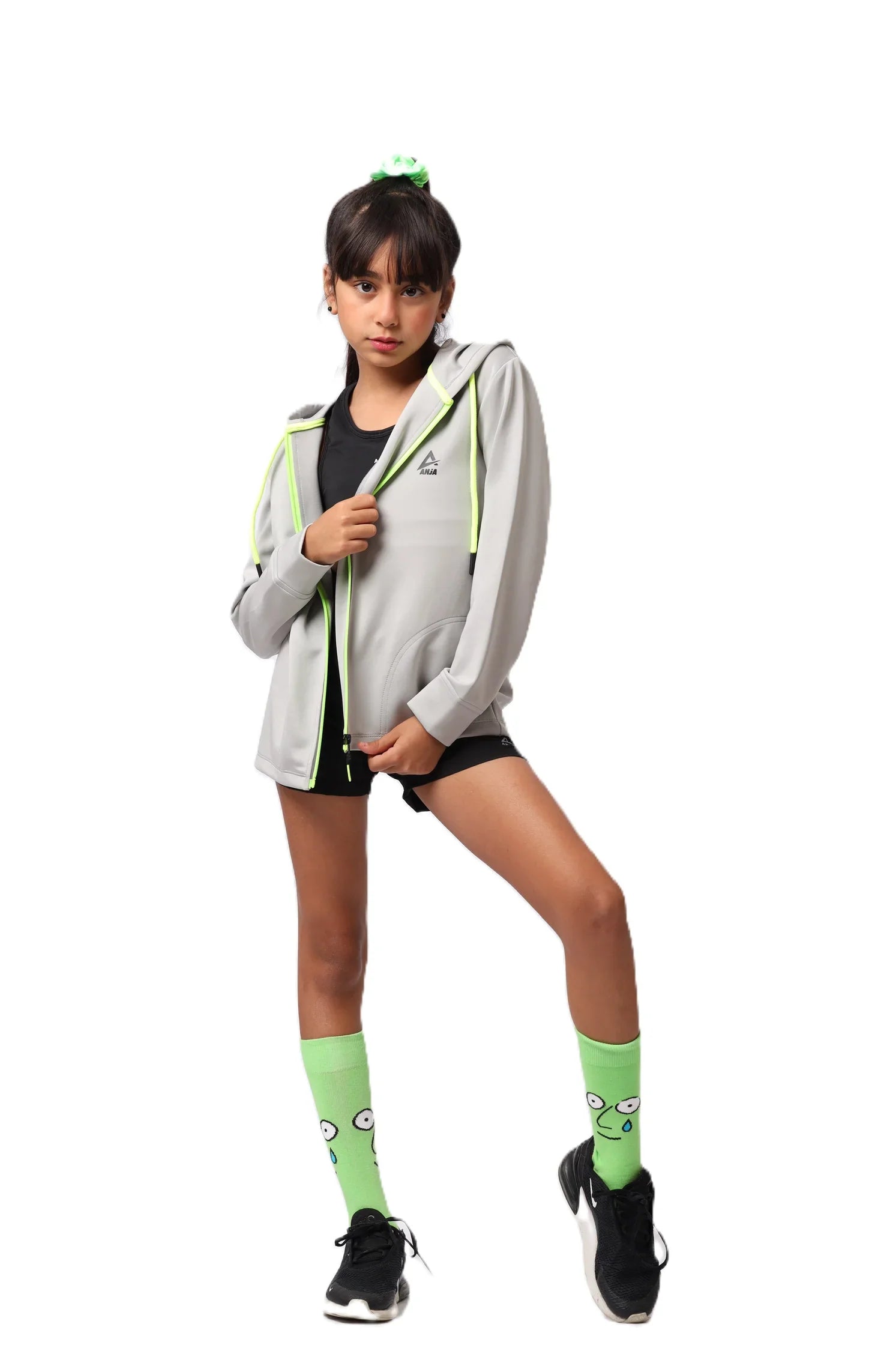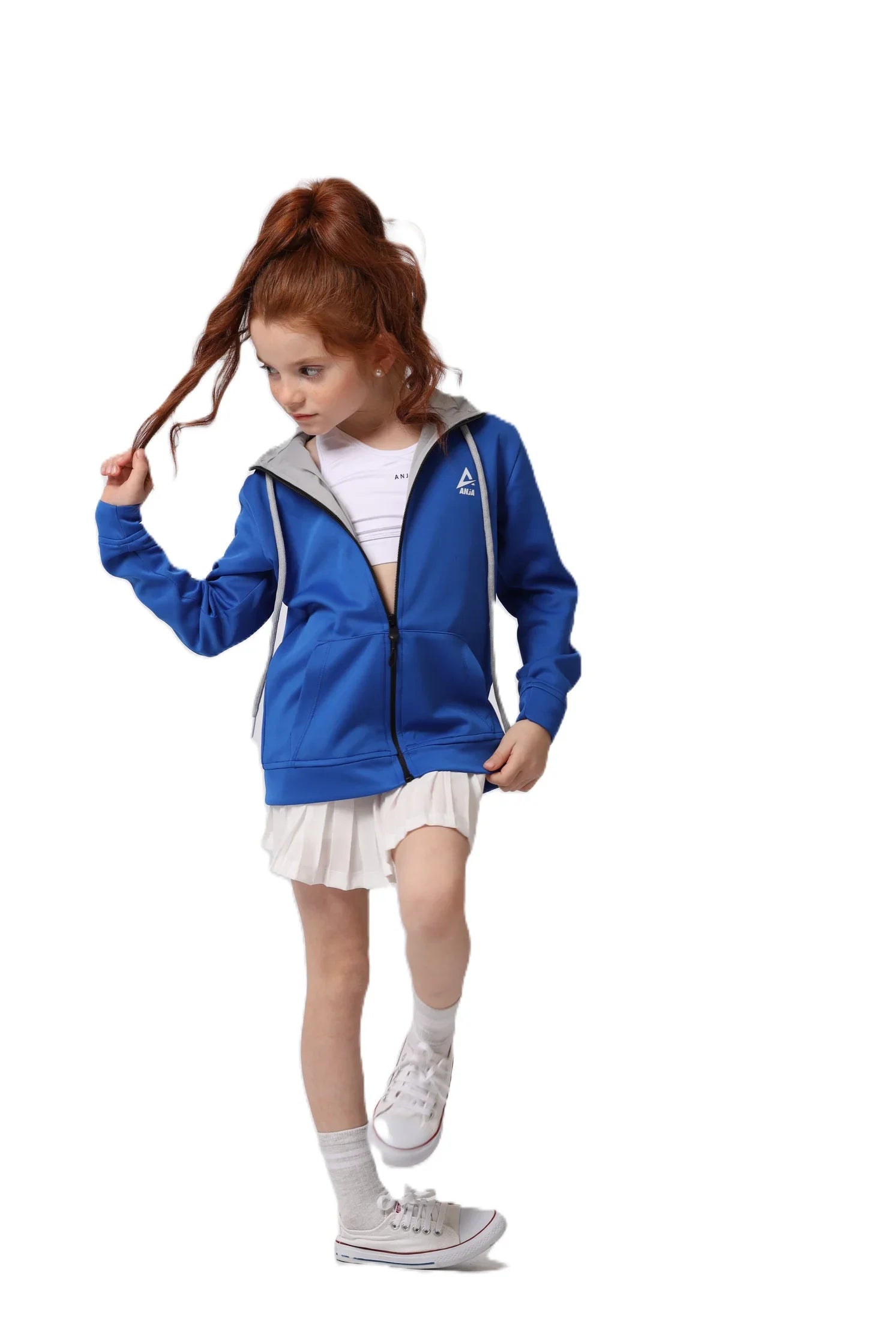Girls Zip-Up Sweatshirt – Sporty Contrast Trim Jacket