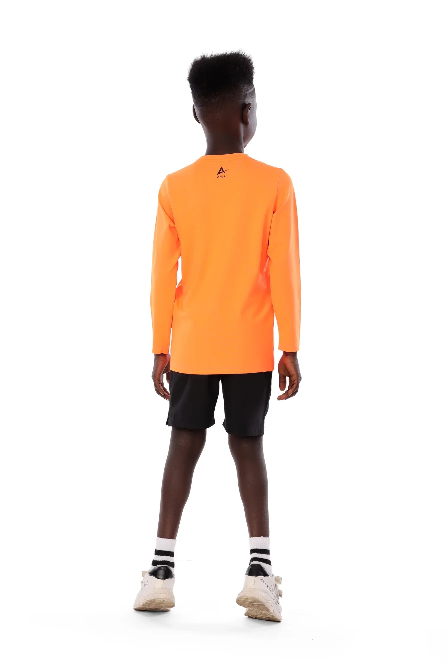 Boys Neon Orange Padel Racket Smash T-Shirt – Sporty Long Sleeve Top
