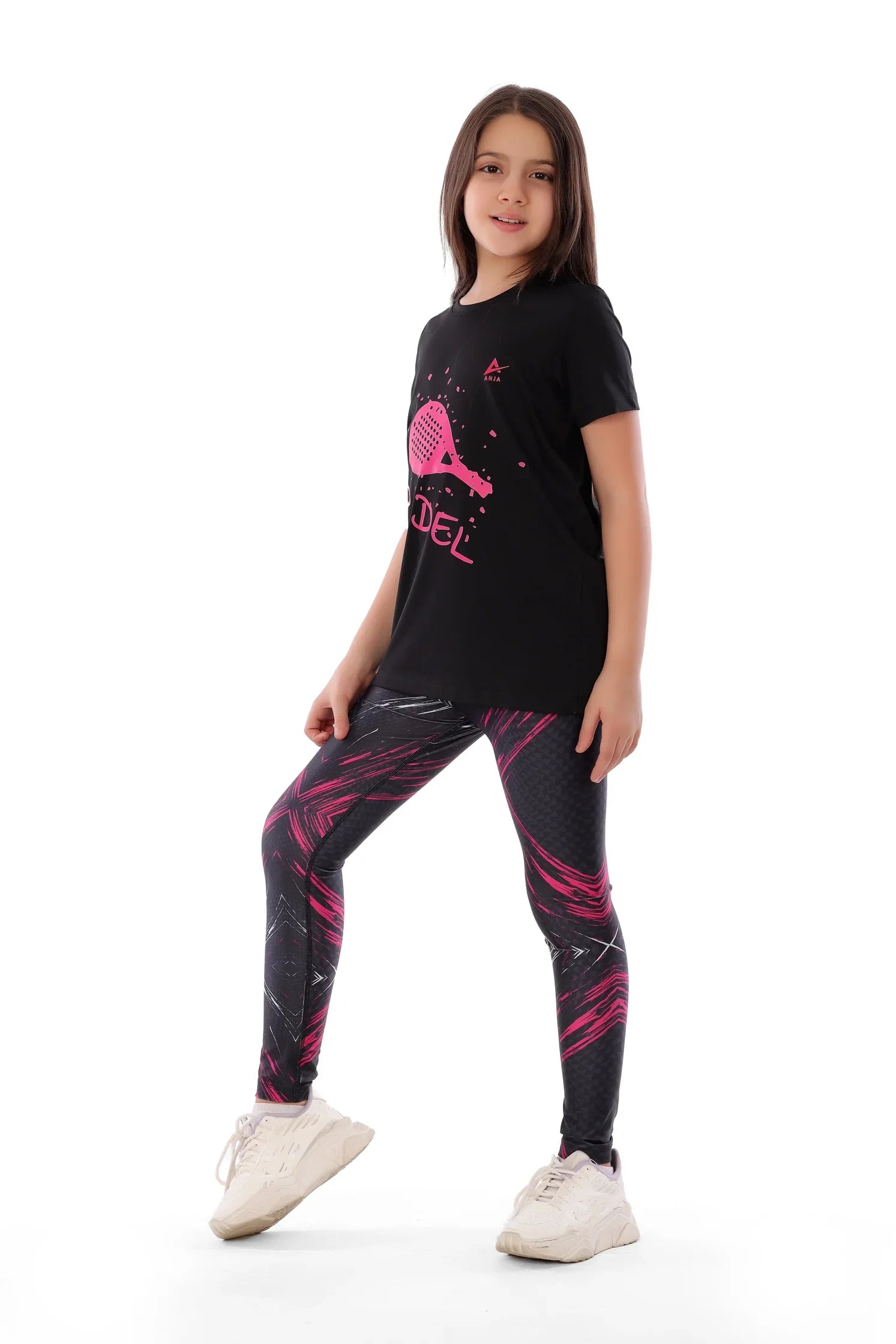 Girls Black Padel T-Shirt – Sporty Athletic Top