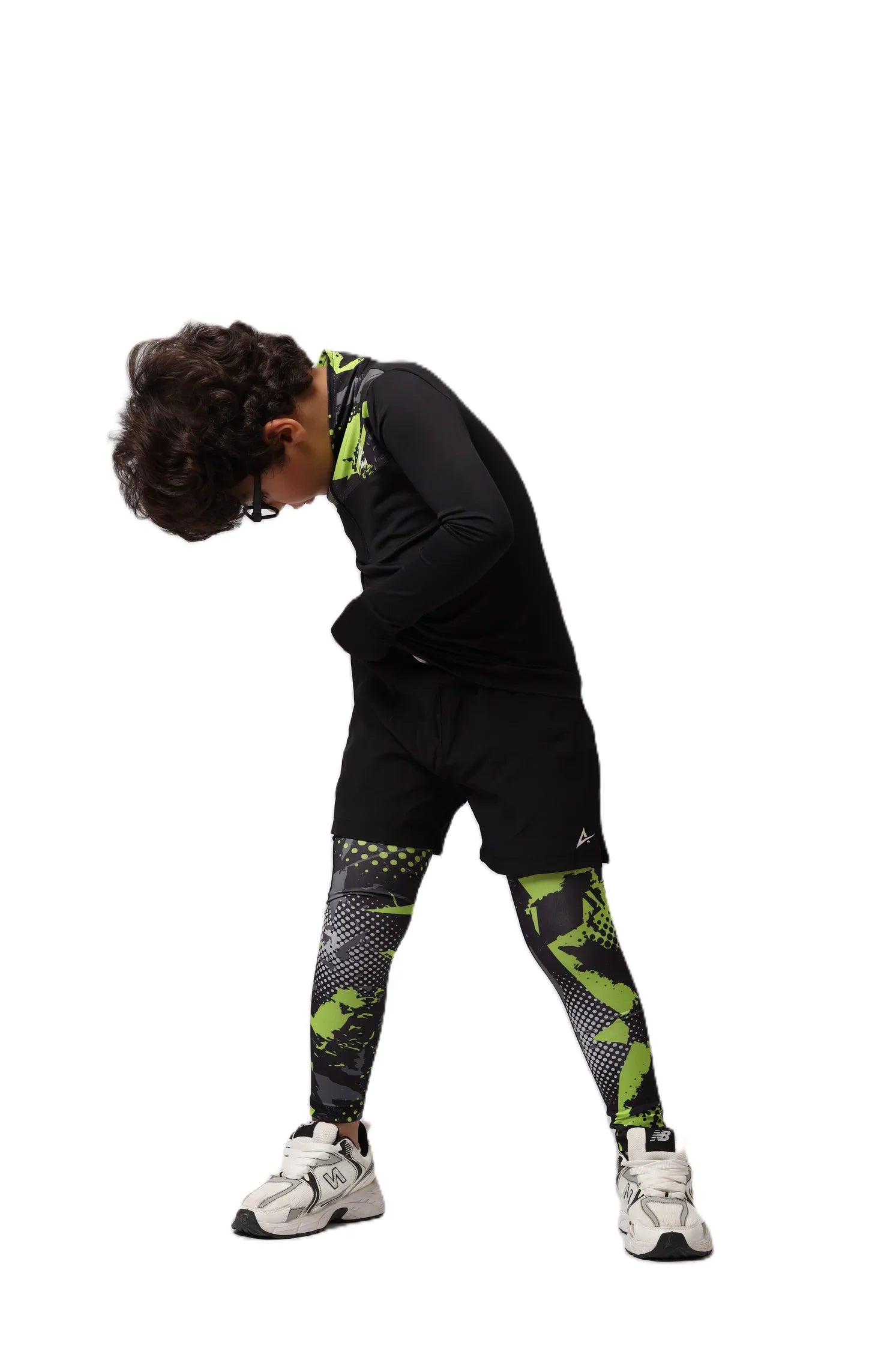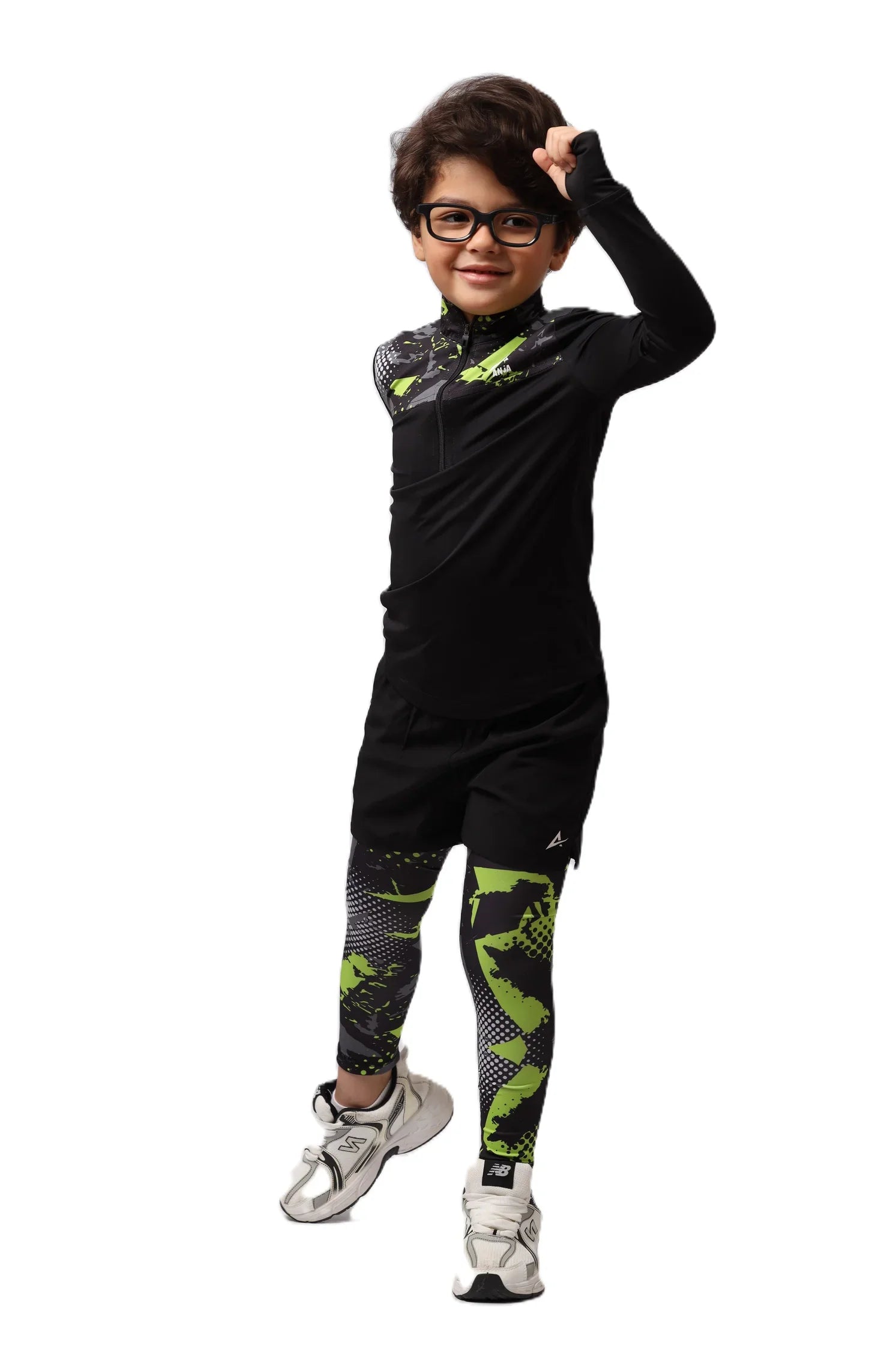 Boys Black & Green pattern T-Shirt – Sporty Long Sleeve Top