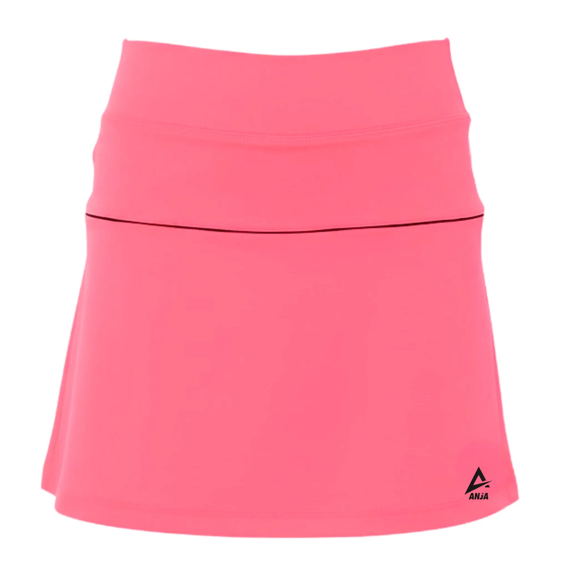 Pink skirt with a black logo on a white background